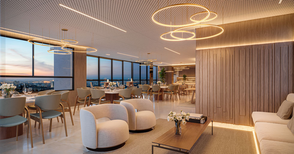 •Sistema de automação para áreas comuns (iluminação dos ambientes sociais, iluminação de fachada e paisagismo, ar condicionado e equipamentos estratégicos);